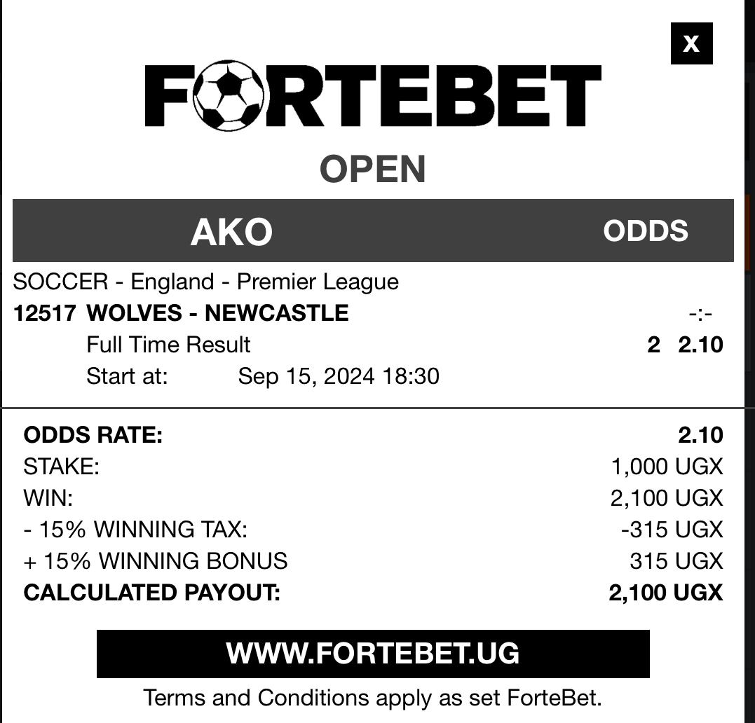 Fortebet sure tips of 15/09/2024